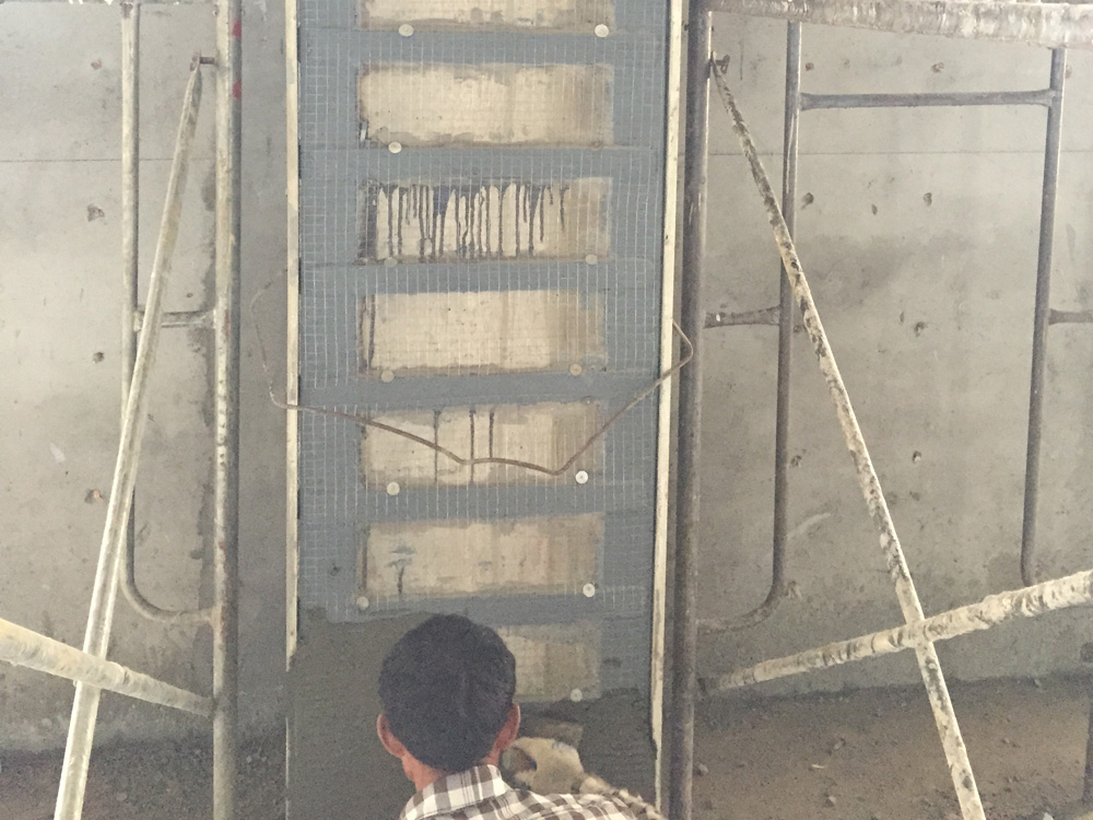 施工工藝:粘貼炭纖維、灌漿料、鋼支撐轉(zhuǎn)換